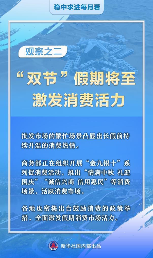 商務部新聞發言人何亞東介紹,商務部正在組織開展“金九銀十”系列促消費活動,發布“情滿中秋 禮迎國慶”“誠信興商 信譽惠平易近”等消費場景,活躍消費市場。